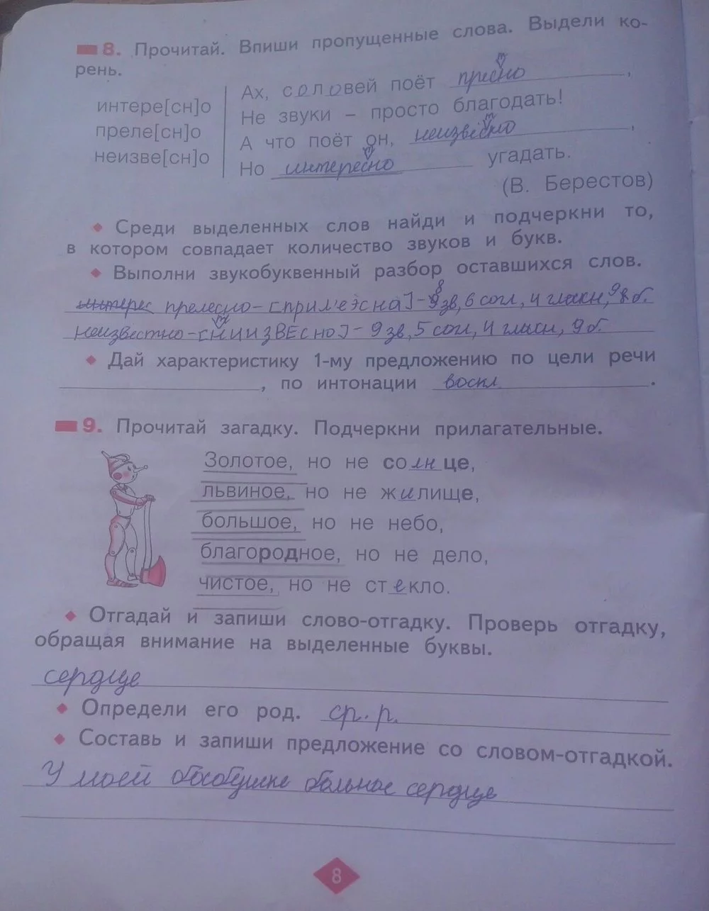 Решения домашних заданий по русскому языку 2 класс Яковлева С.Г. 8 упражнение Рабочая тетрадь