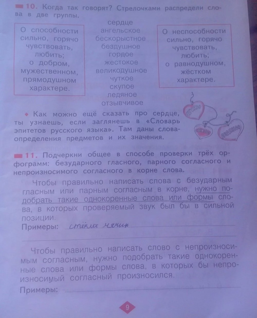 Решения домашних заданий по русскому языку 2 класс Яковлева С.Г. 9 упражнение Рабочая тетрадь