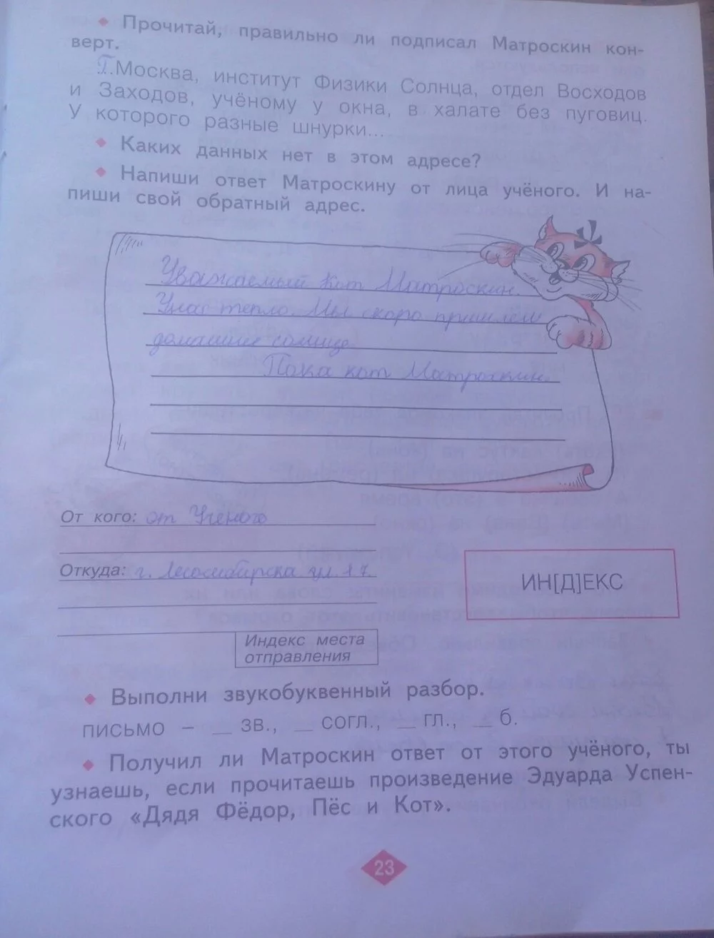 Решения домашних заданий по русскому языку 2 класс Яковлева С.Г. 23 упражнение Рабочая тетрадь