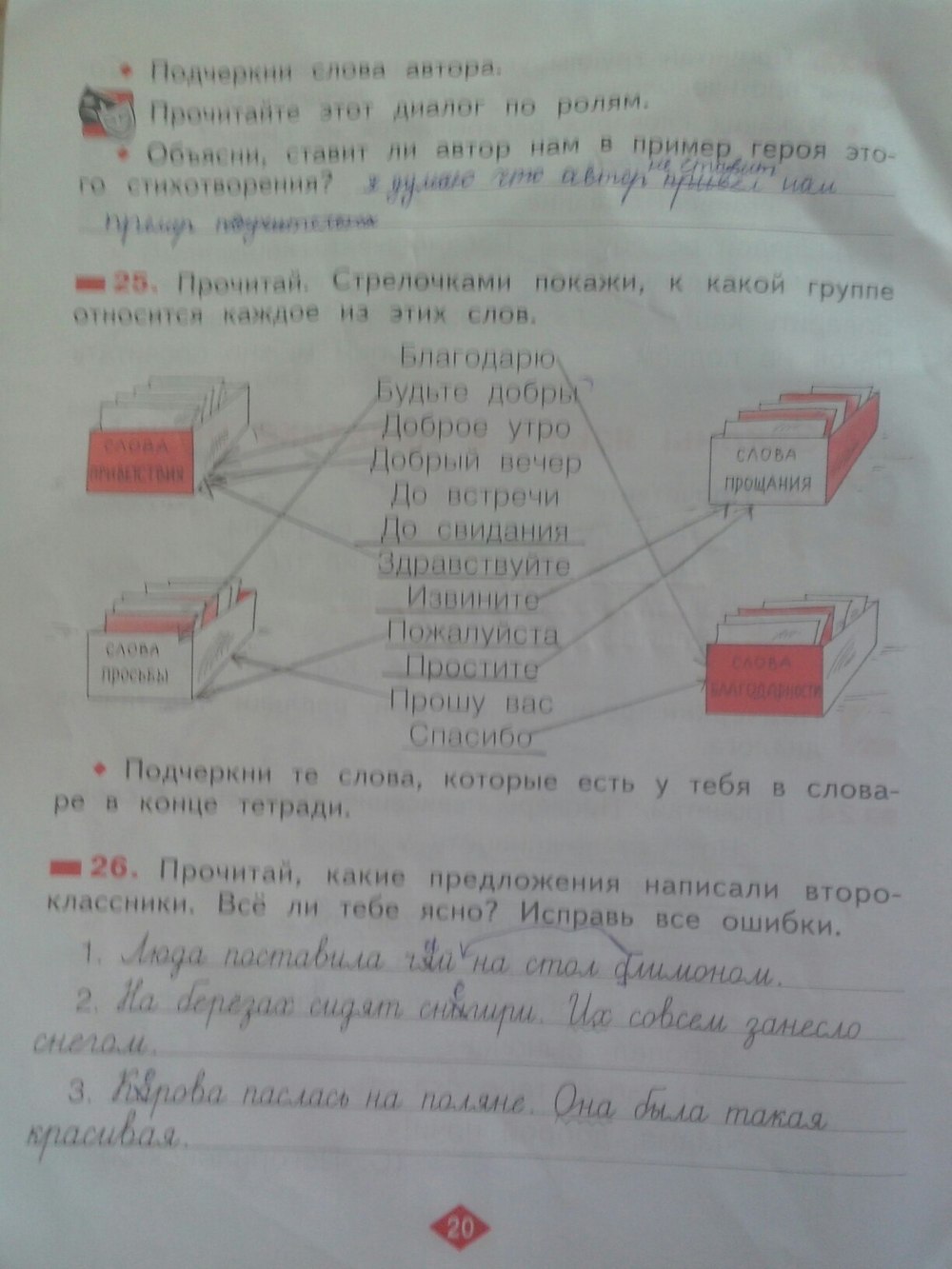 Решения домашних заданий по русскому языку 2 класс Яковлева С.Г. 20 упражнение Рабочая тетрадь