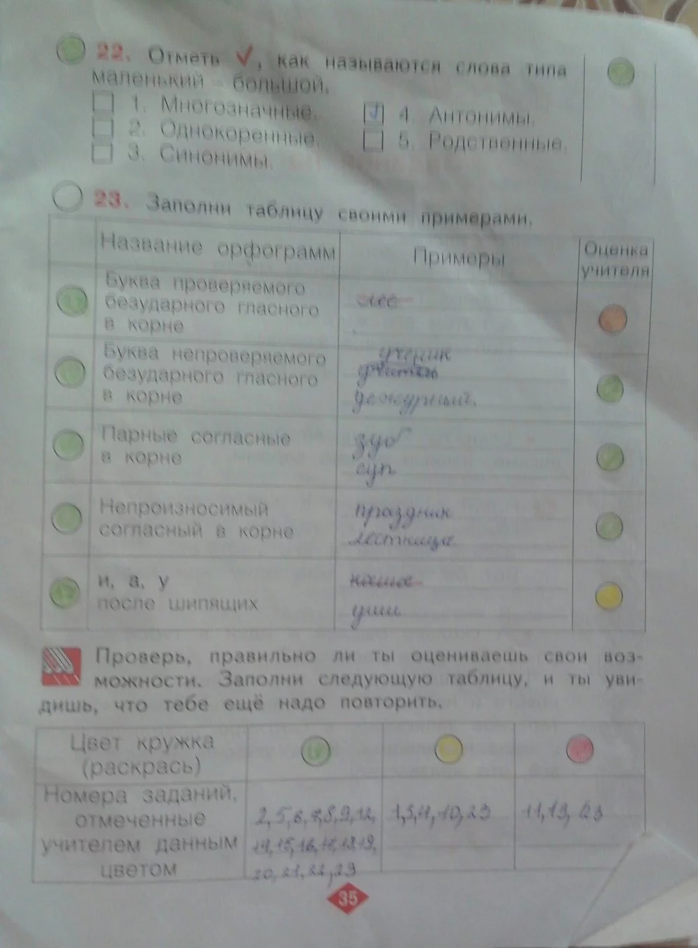 Решения домашних заданий по русскому языку 2 класс Яковлева С.Г. 35 упражнение Рабочая тетрадь