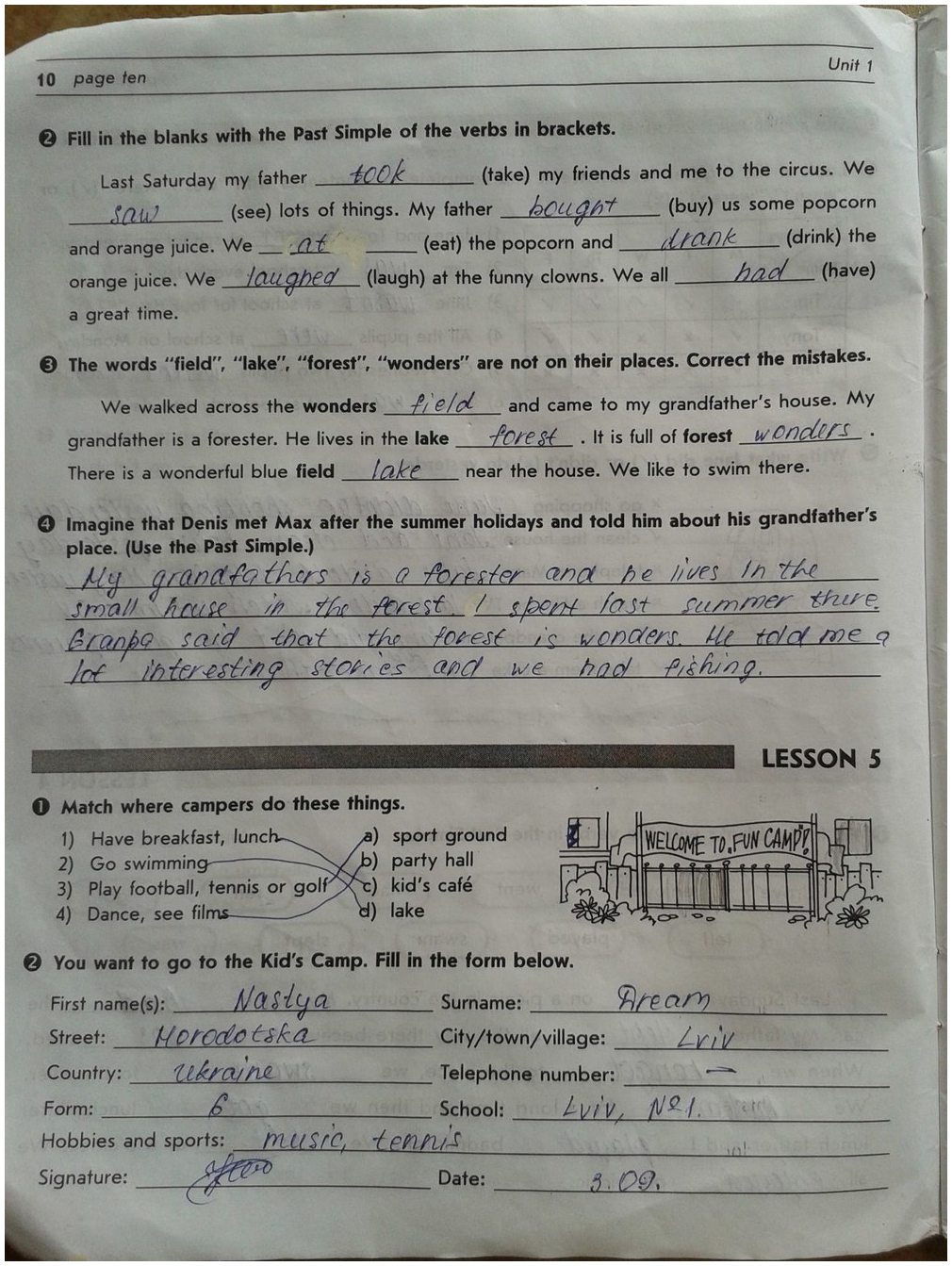 Решения домашних заданий по английскому языку 5 класс Погарська Т.В 10 упражнение