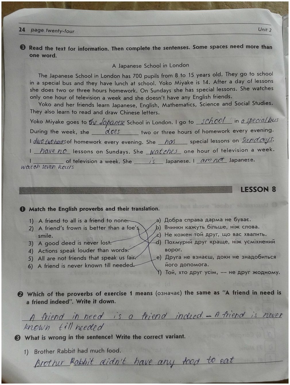 Решения домашних заданий по английскому языку 5 класс Погарська Т.В 24 упражнение