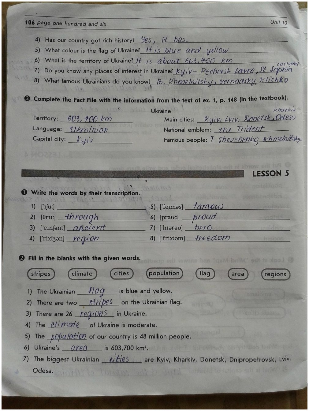 Решения домашних заданий по английскому языку 5 класс Погарська Т.В 106 упражнение