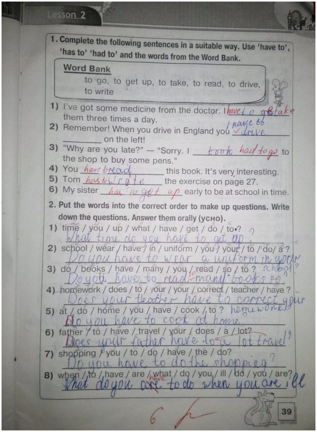 Решения домашних заданий по английскому языку 5 класс Карп`юк О.Д 39 упражнение