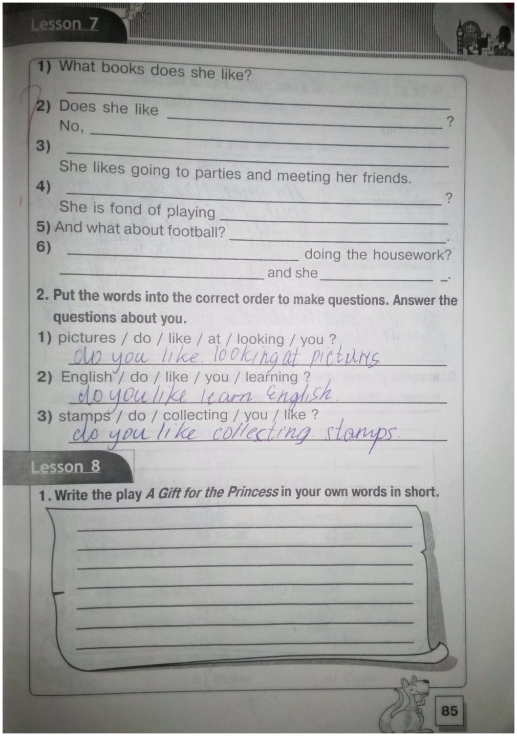 Решения домашних заданий по английскому языку 5 класс Карп`юк О.Д 85 упражнение