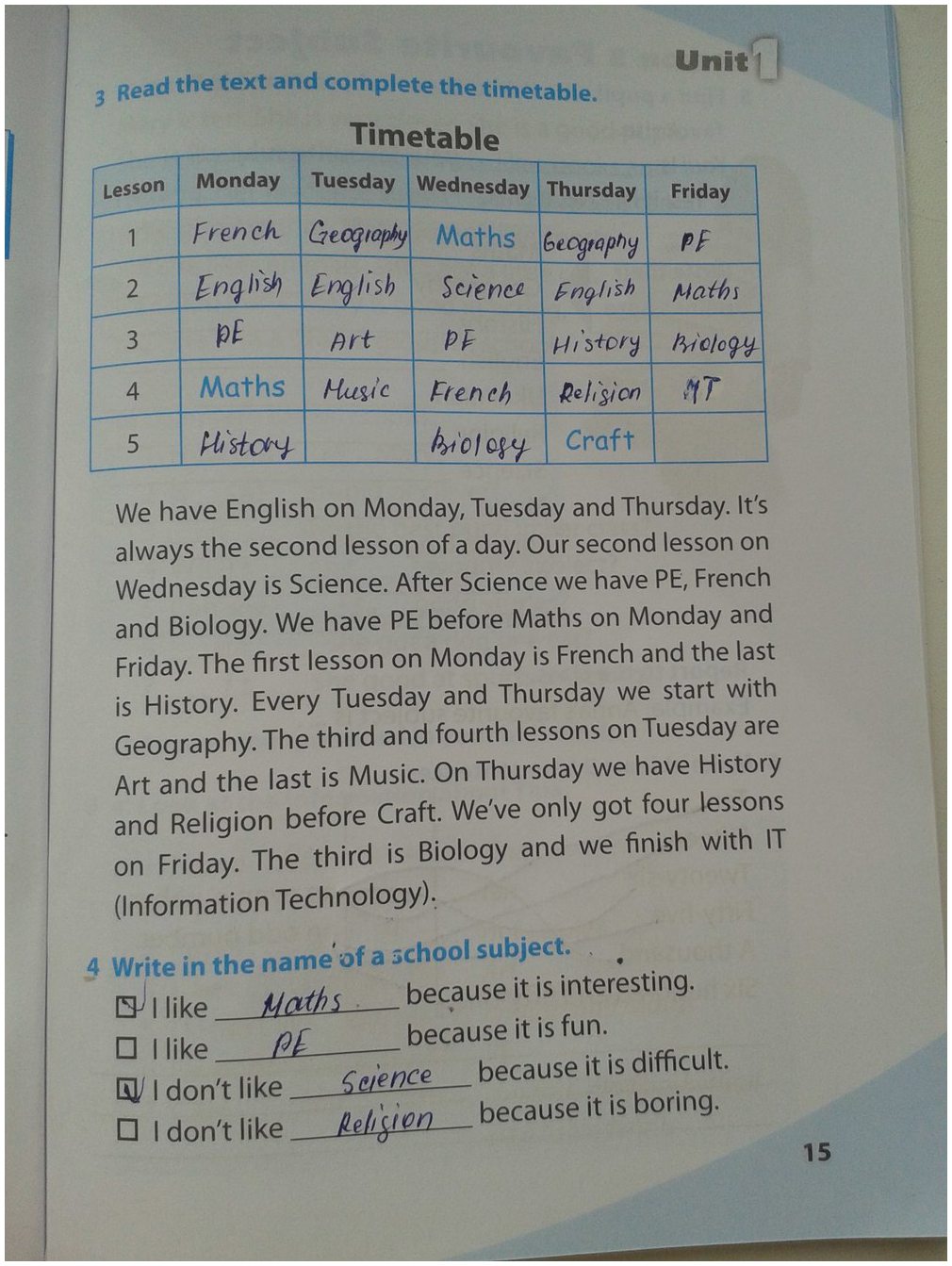 Решения домашних заданий по английскому языку 5 класс Карп`юк О.Д. 15 упражнение Workbook