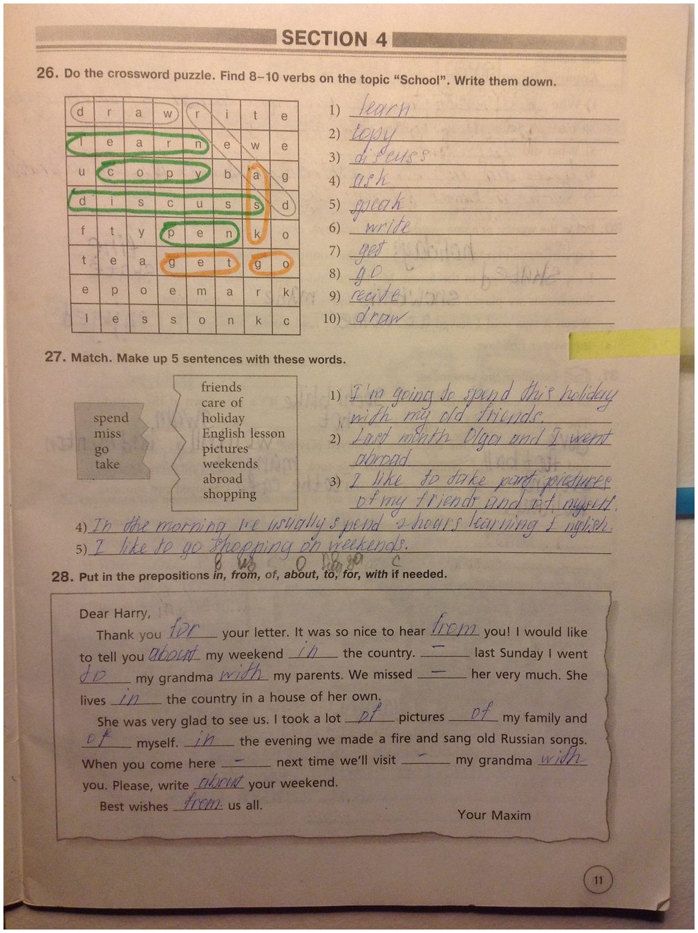 Решения домашних заданий по английскому языку 5 класс Биболетова М.З., Трубанева Н.Н. 11 упражнение Enjoy English рабочая тетрадь