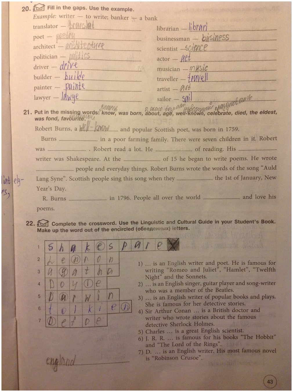 Решения домашних заданий по английскому языку 5 класс Биболетова М.З., Трубанева Н.Н. 43 упражнение Enjoy English рабочая тетрадь