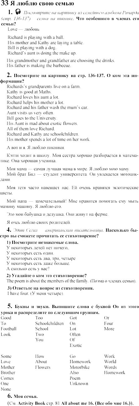 Решения домашних заданий по английскому языку 5 класс Кузовлев В.П., Лапа Н., Перегудова Э.Ш. 33 упражнение Student`s Book