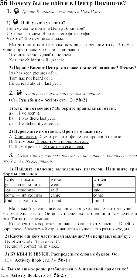 Решения домашних заданий по английскому языку 5 класс Кузовлев В.П., Лапа Н., Перегудова Э.Ш. 56 упражнение Student`s Book