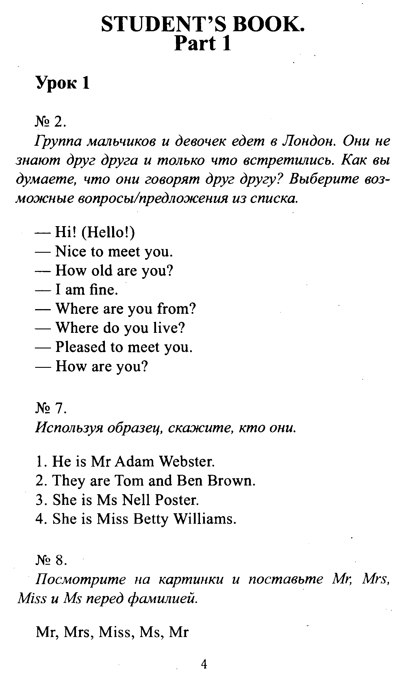 Решения домашних заданий по английскому языку 5 класс Верещагина И.Н., Афанасьева О.В. 4 (1) упражнение Student`s Book