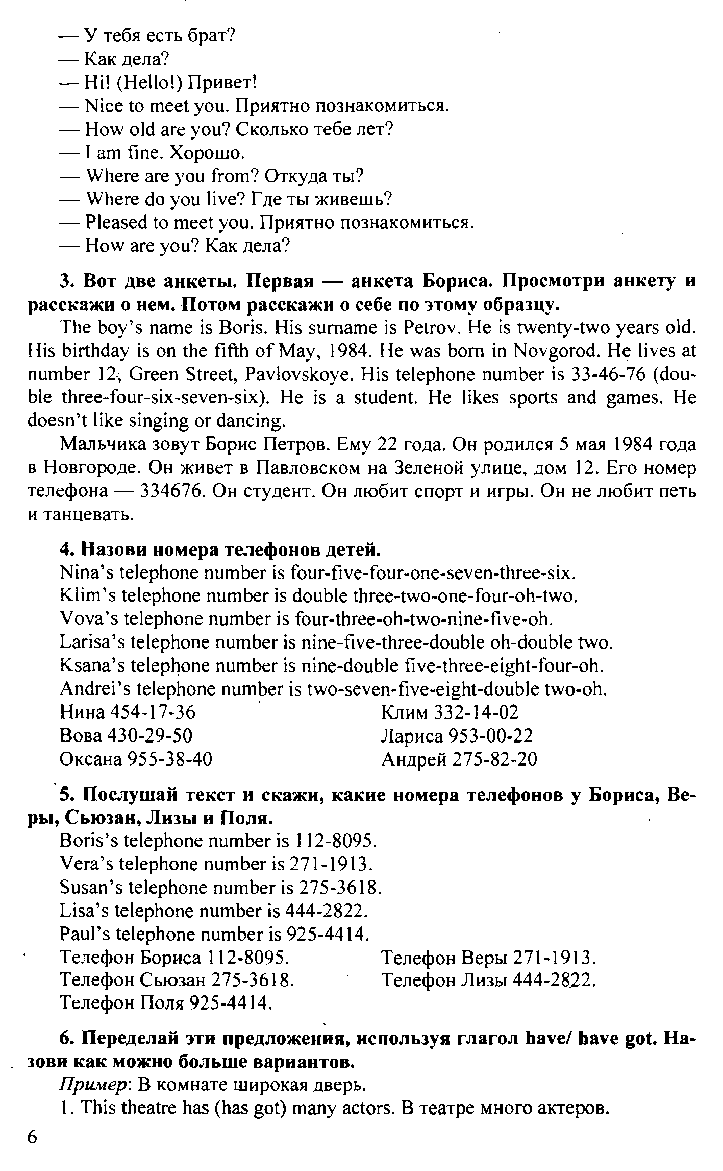 Решения домашних заданий по английскому языку 5 класс Верещагина И.Н., Афанасьева О.В. 6 упражнение Student`s Book - Workbook