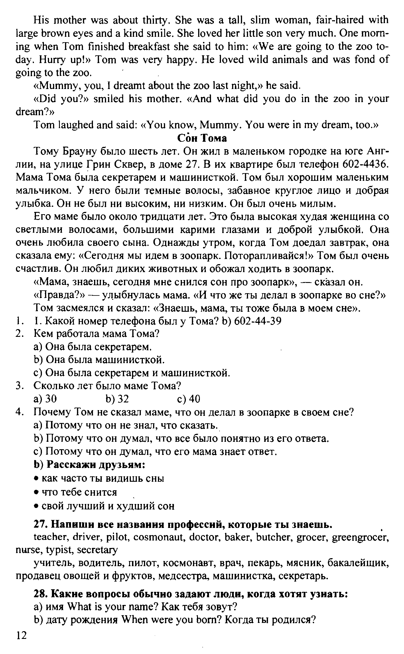 Решения домашних заданий по английскому языку 5 класс Верещагина И.Н., Афанасьева О.В. 12 упражнение Student`s Book - Workbook