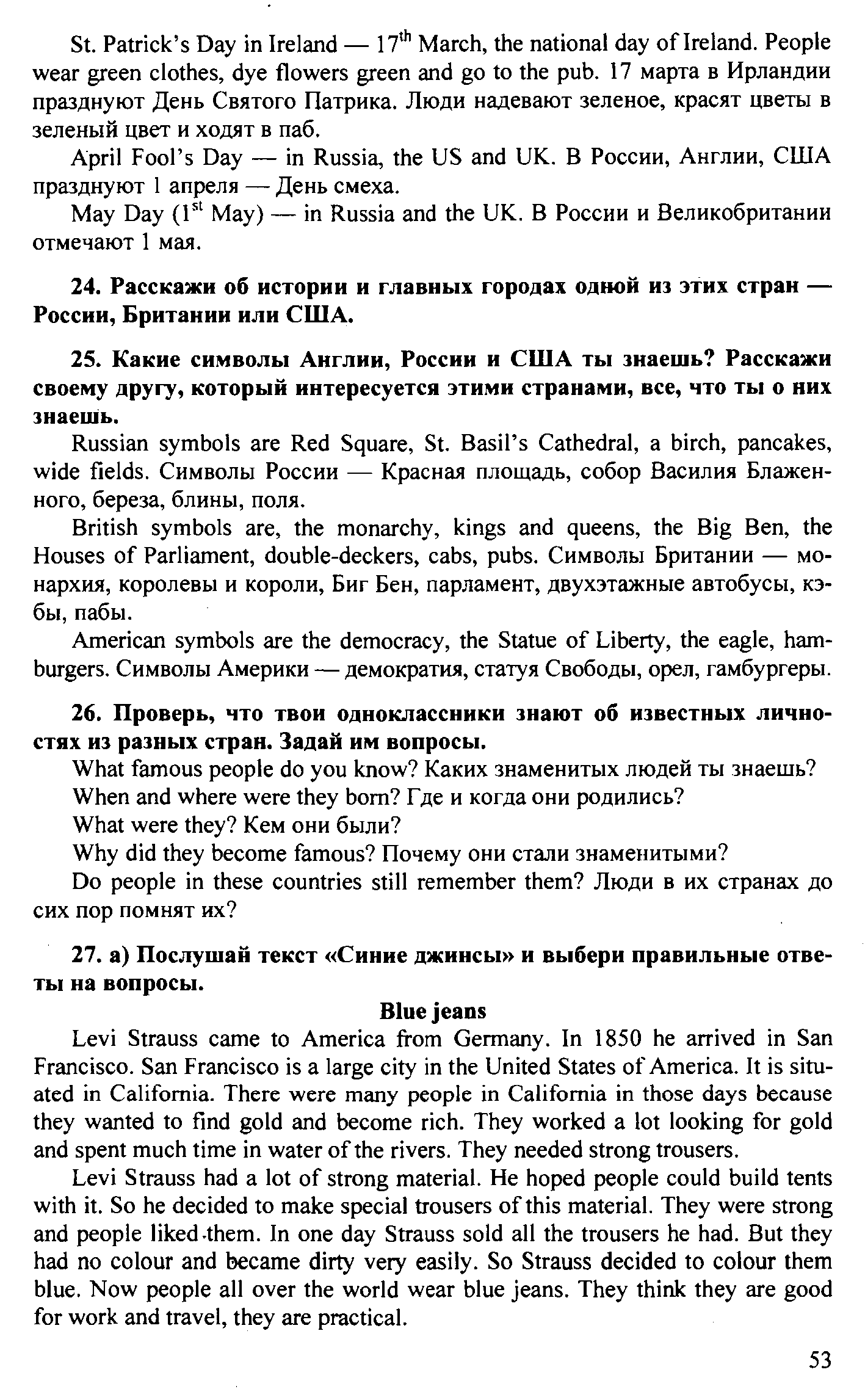 Решения домашних заданий по английскому языку 5 класс Верещагина И.Н., Афанасьева О.В. 53 упражнение Student`s Book - Workbook