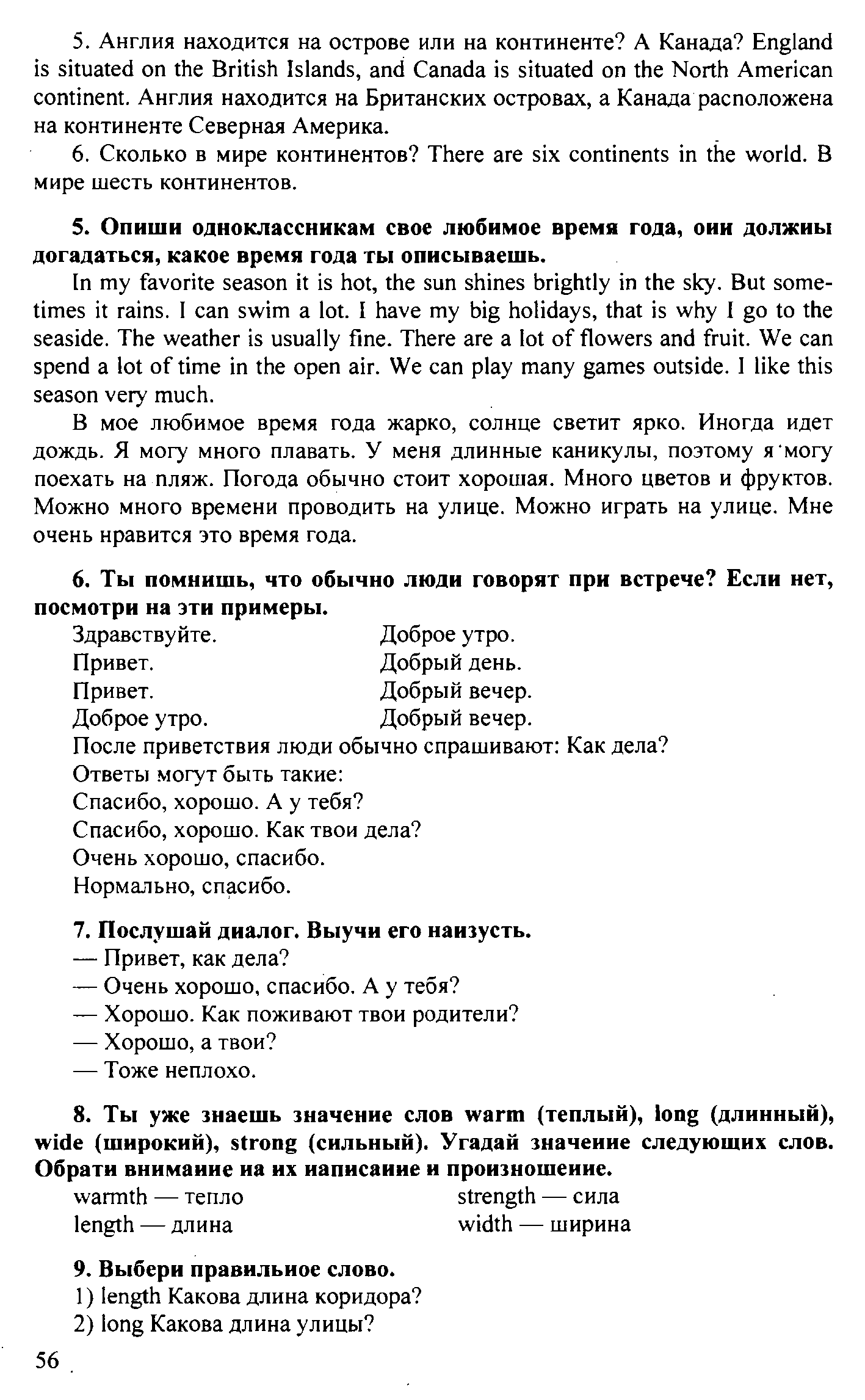 Решения домашних заданий по английскому языку 5 класс Верещагина И.Н., Афанасьева О.В. 56 упражнение Student`s Book - Workbook