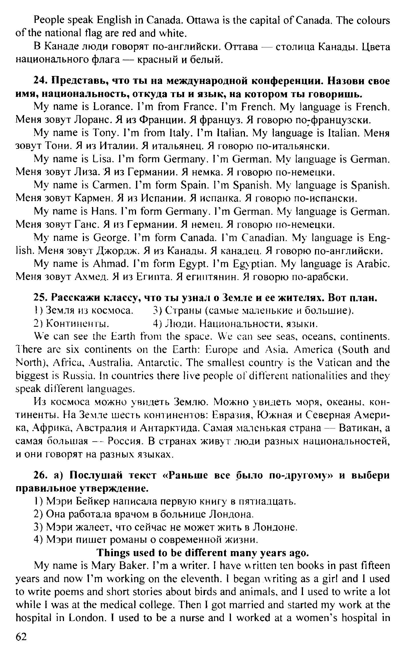 Решения домашних заданий по английскому языку 5 класс Верещагина И.Н., Афанасьева О.В. 62 упражнение Student`s Book - Workbook