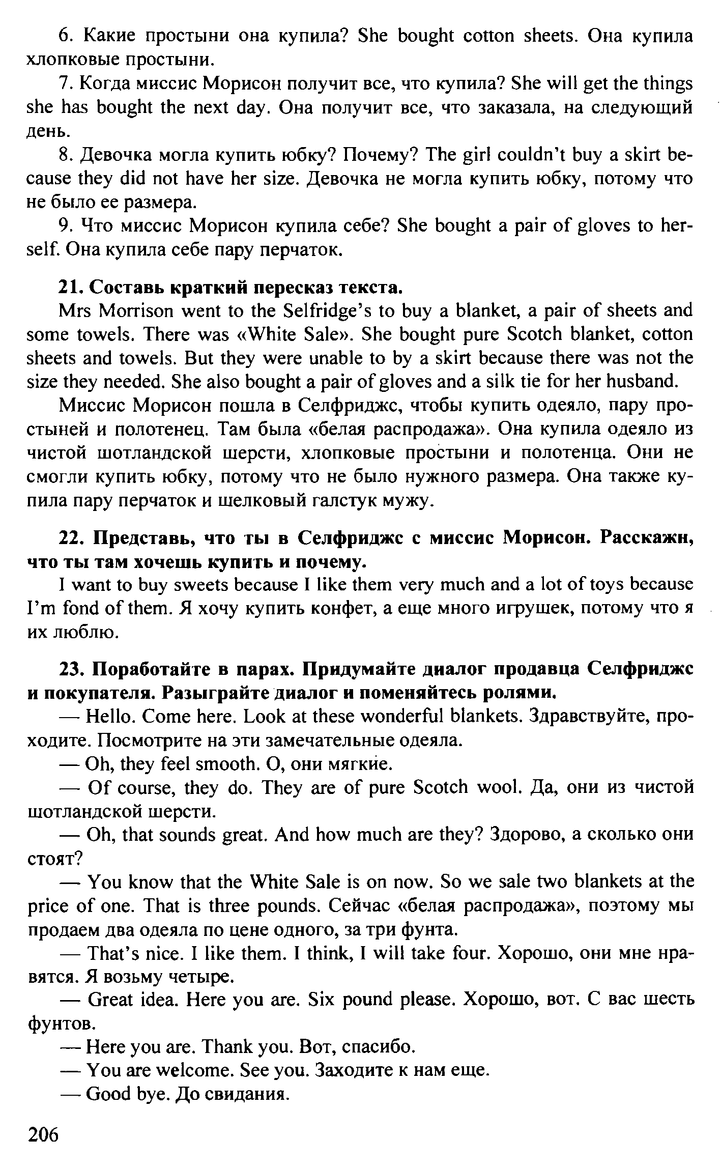 Решения домашних заданий по английскому языку 5 класс Верещагина И.Н., Афанасьева О.В. 206 упражнение Student`s Book - Workbook