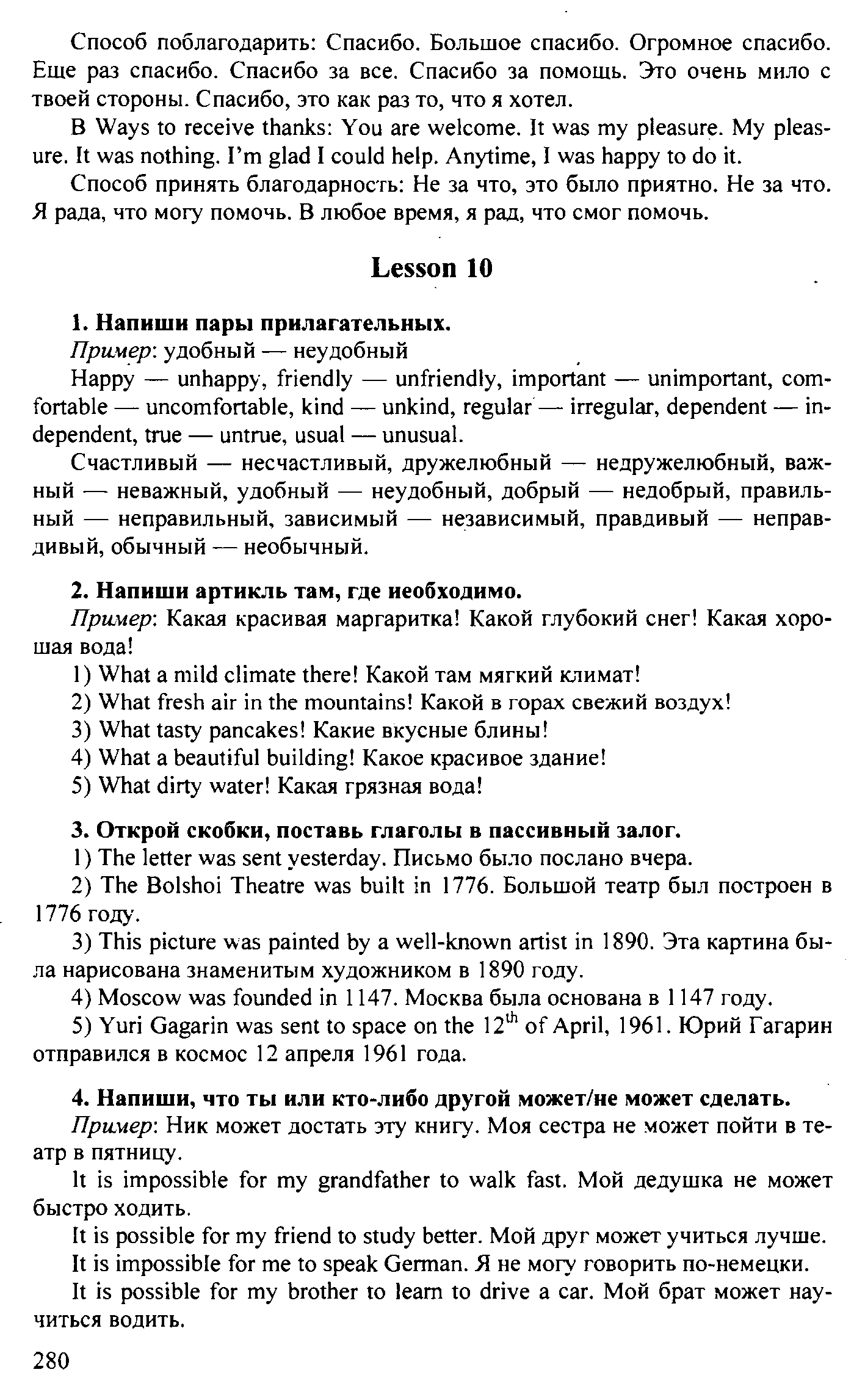 Решения домашних заданий по английскому языку 5 класс Верещагина И.Н., Афанасьева О.В. 280 упражнение Student`s Book - Workbook