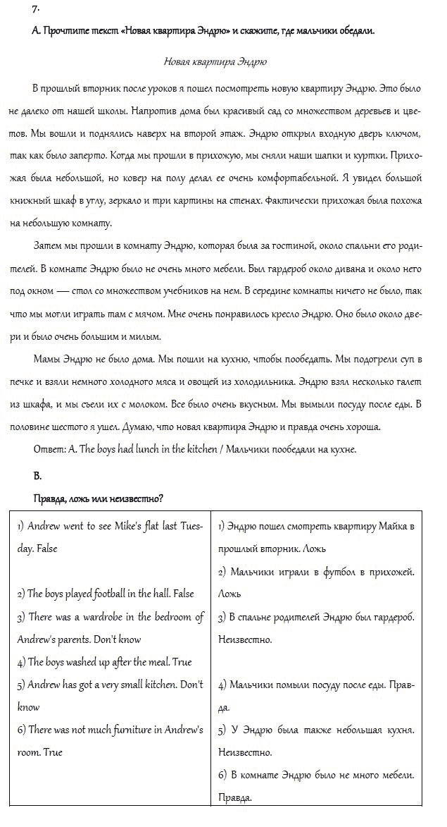 Решения домашних заданий по английскому языку 4 класс Верещагина И.Н. 7 упражнение