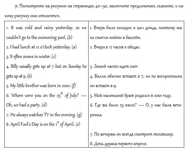 Решения домашних заданий по английскому языку 4 класс Верещагина И.Н. 7 упражнение