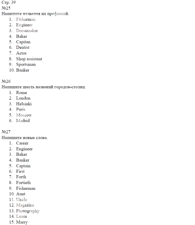 Решения домашних заданий по английскому языку 5 класс Афанасьева О.В., Михеева И.В. 39 упражнение Rainbow English