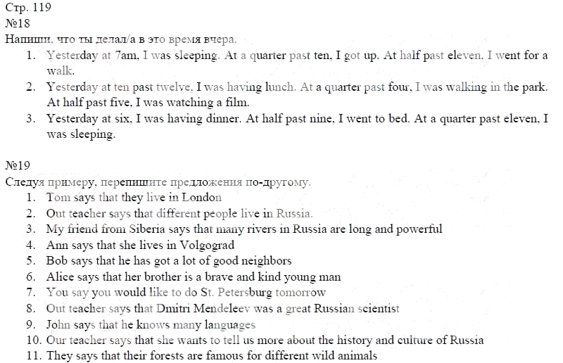 Решения домашних заданий по английскому языку 5 класс Афанасьева О.В., Михеева И.В. 119 упражнение Rainbow English
