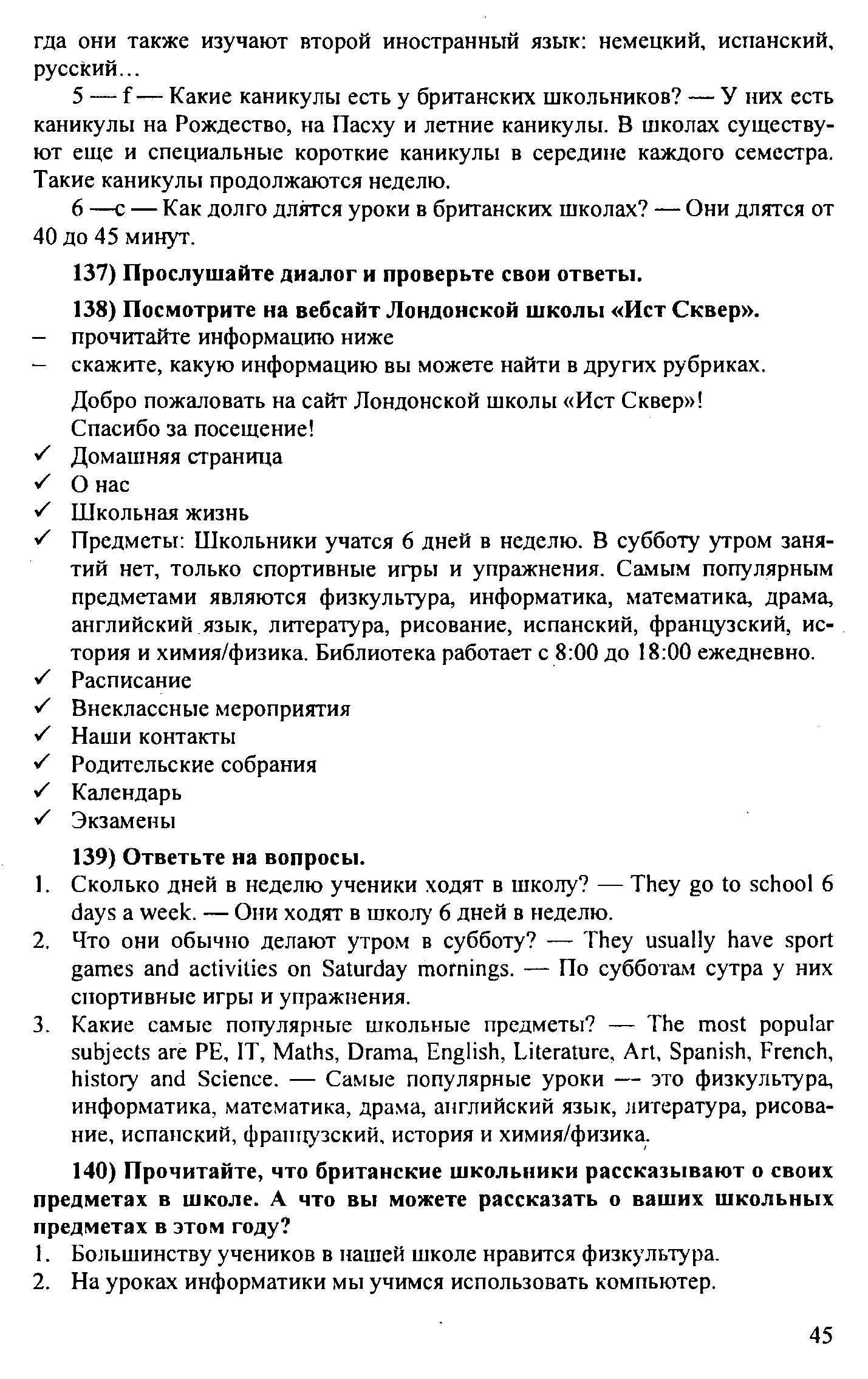 Решения домашних заданий по английскому языку 5 класс Биболетова М.З., Денисенко О.А., Трубанева Н.Н. 45 упражнение Enjoy English