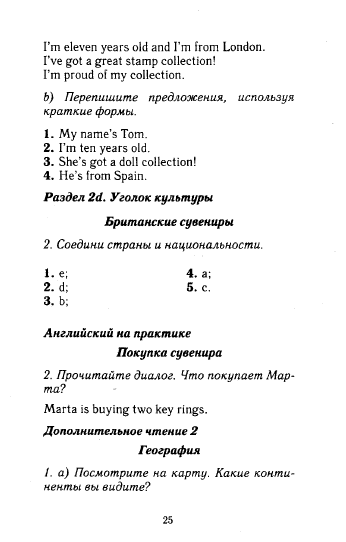 Решения домашних заданий по английскому языку 5 класс Ваулина Ю.Е., Эванс В., Дули Д 25 упражнение