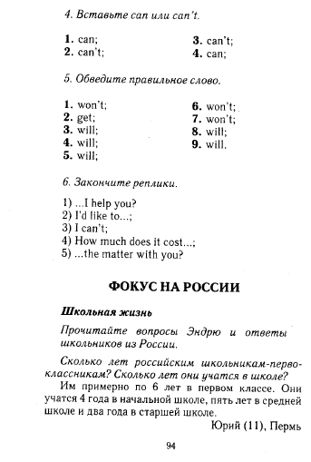 Решения домашних заданий по английскому языку 5 класс Ваулина Ю.Е., Эванс В., Дули Д 94 упражнение