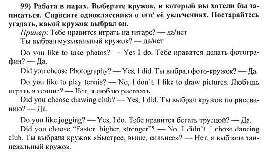 Решения домашних заданий по английскому языку 5 класс Биболетова М. З. 99 упражнение Student's Book - Workbook - Reader