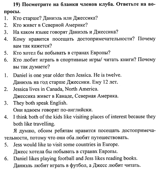 Решения домашних заданий по английскому языку 6 класс Биболетова М. З. 19 упражнение Student's Book
