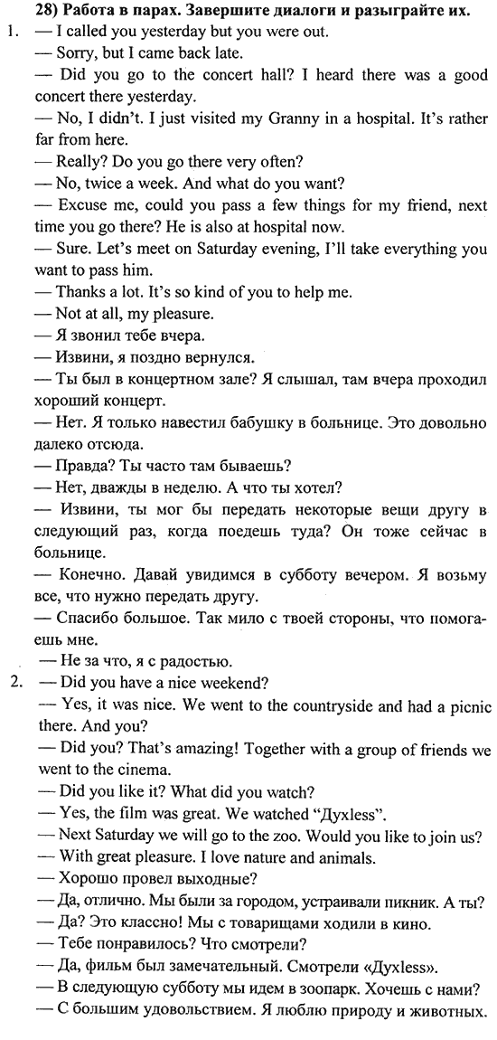 Решения домашних заданий по английскому языку 6 класс Биболетова М. З. 28 упражнение Student's Book