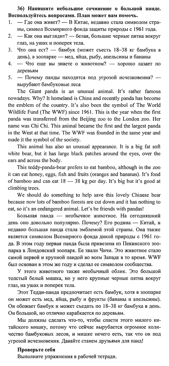Решения домашних заданий по английскому языку 6 класс Биболетова М. З. 36 упражнение Student's Book