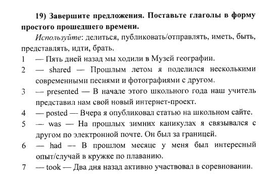 Решения домашних заданий по английскому языку 6 класс Биболетова М. З. 19 упражнение Student's Book