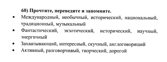 Решения домашних заданий по английскому языку 6 класс Биболетова М. З. 60 упражнение Student's Book