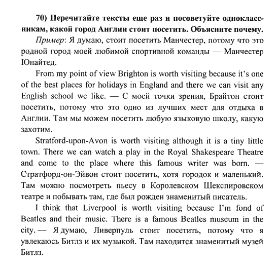 Решения домашних заданий по английскому языку 6 класс Биболетова М. З. 70 упражнение Student's Book