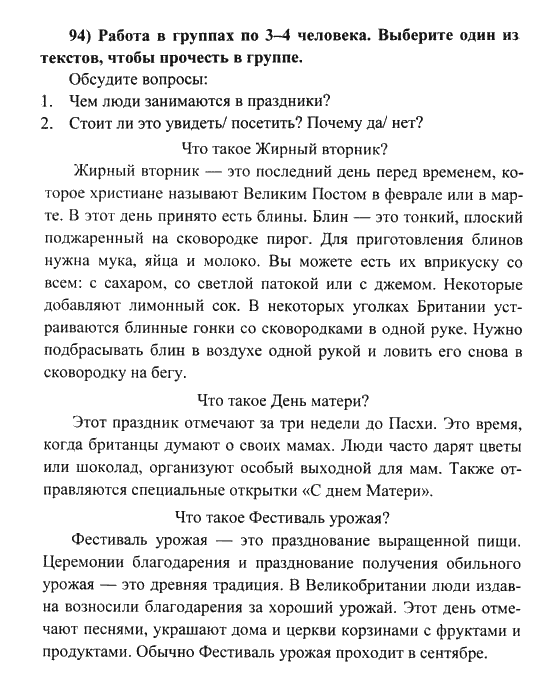 Решения домашних заданий по английскому языку 6 класс Биболетова М. З. 94 упражнение Student's Book