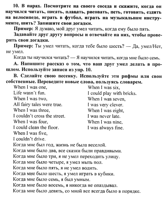 Решения домашних заданий по английскому языку 6 класс Кауфман К.И., Кауфман М.Ю. 10 упражнение Student's Book