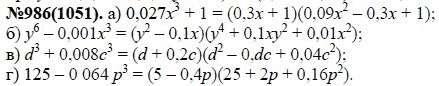 Решения домашних заданий по алгебре 7 класс Макарычев Ю.Н., Миндюк Н.Г., Нешков К.И., Суворова С.Б. 986(1051) упражнение