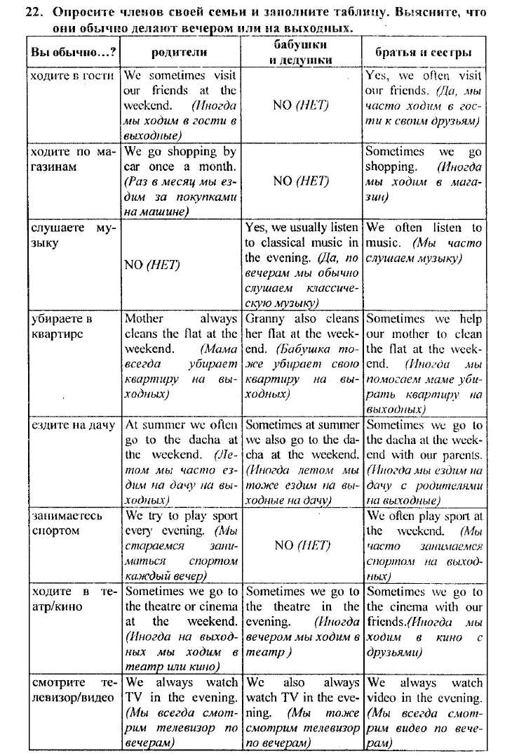 Решения домашних заданий по английскому языку 5 класс Биболетова М. З., Добрынина Н.В. 22^1 упражнение Enjoy English