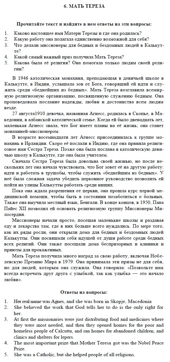 Решения домашних заданий по английскому языку 7 класс Афанасьева О.В., Михеева И.В. 6 упражнение STUDENT’S BOOK, READER
