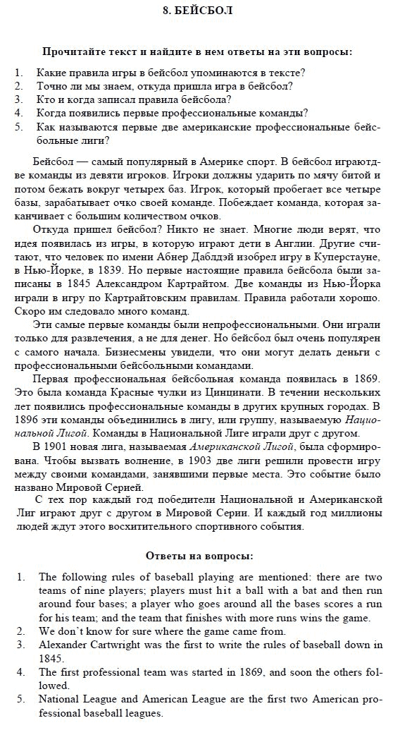 Решения домашних заданий по английскому языку 7 класс Афанасьева О.В., Михеева И.В. 8 упражнение STUDENT’S BOOK, READER