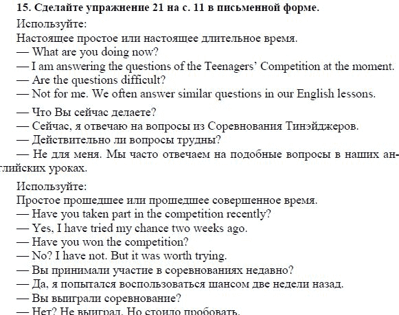 Решения домашних заданий по английскому языку 7 класс Биболетова М. З. 15 упражнение Student's Book Workbook