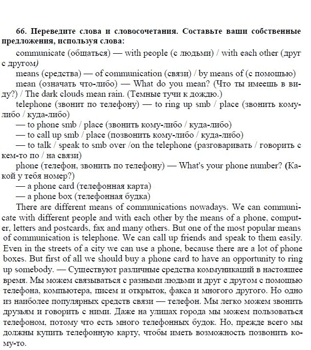 Решения домашних заданий по английскому языку 7 класс Биболетова М. З. 66 упражнение Student's Book Workbook