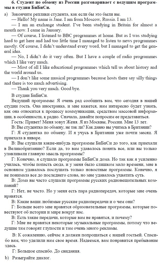 Решения домашних заданий по английскому языку 8 класс Биболетова М. З. 6 упражнение Student's Book Workbook