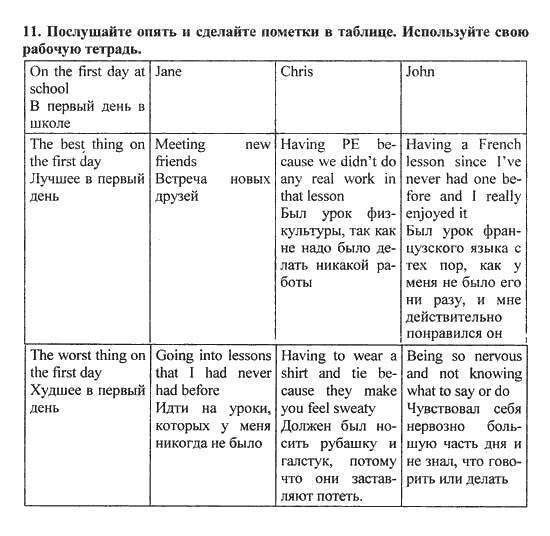 Решения домашних заданий по английскому языку 10 класс Биболетова М. З. 11 упражнение Student's Book