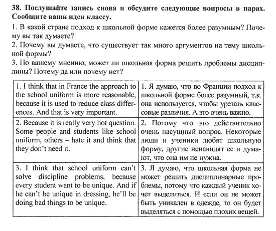 Решения домашних заданий по английскому языку 10 класс Биболетова М. З. 38 упражнение Student's Book