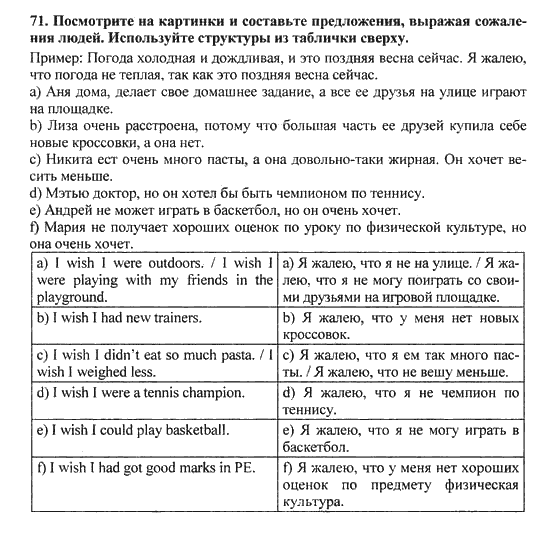 Решения домашних заданий по английскому языку 10 класс Биболетова М. З. 71 упражнение Student's Book