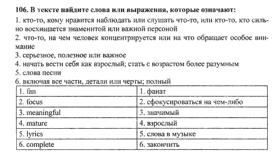 Решения домашних заданий по английскому языку 10 класс Биболетова М. З. 106 упражнение Student's Book